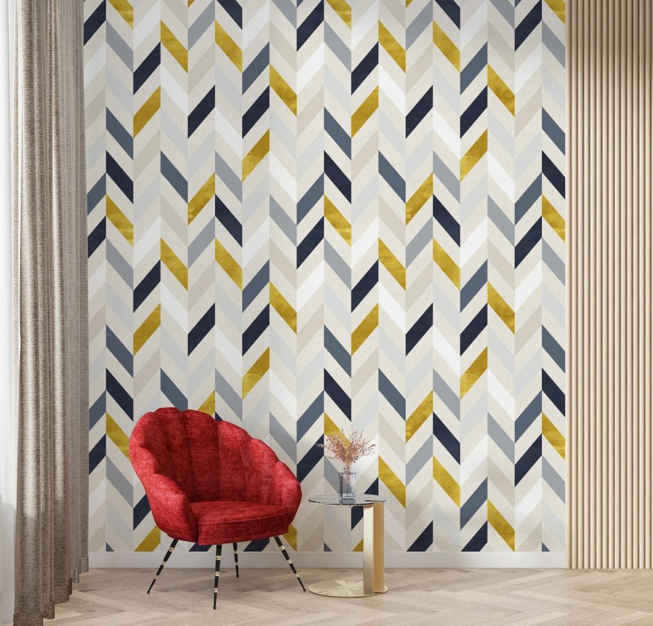 Add contemporary sophistication to your interiors with the Modern Chevron Luxe Geometric Wallpaper. Featuring a rhythmic chevron pattern in layered neutral tones accented with rich navy and warm gold highlights, this design creates depth, movement, and visual interest without overpowering the space. Perfect for living rooms, bedrooms, offices, or feature walls, it pairs effortlessly with modern and transitional décor. This wallpaper delivers a refined balance of elegance and modern style, making it an ideal choice for spaces seeking a bold yet timeless statement.